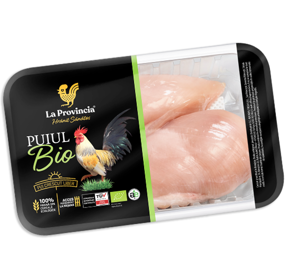 Puiul Bio este o alegere sănătoasă, fiind crescut tradițional, în aer liber, în spații de peste 4 mp pentru fiecare pasăre. Hrana acestuia este din 100% cereale organice, fără hormoni de creștere adăugați.